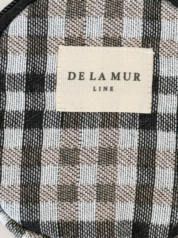 Dieses hübsche und kompakte Kosmetiktäschchen der La Mur Line ist aus einem dicken Jacquardstoff mit einem Karomuster in Beige- und Schwarztönen gefertigt. Das Muster kann je nach Zuschnitt variieren.