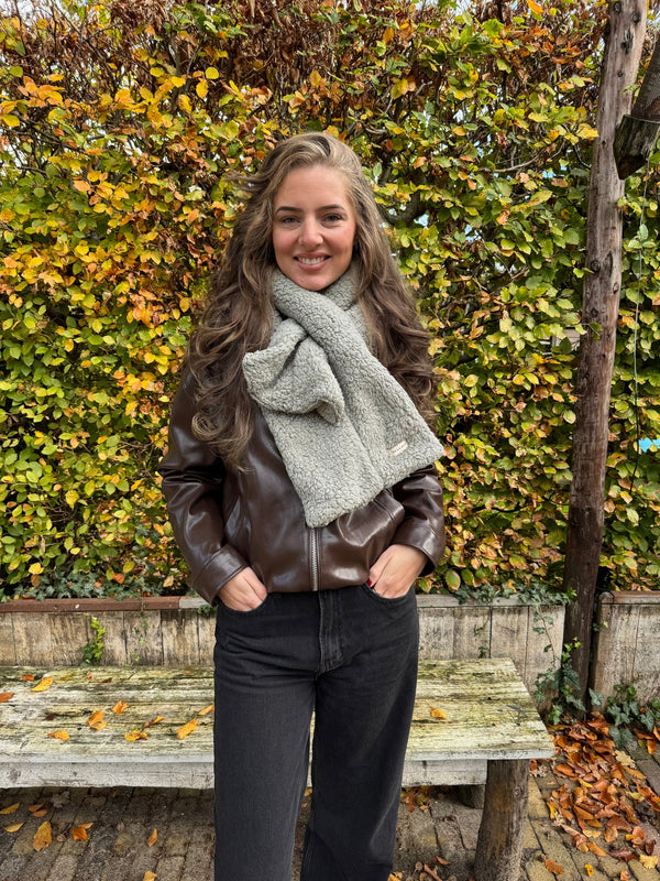 Dank des praktischen Designs lässt sich das Ende einfach durch die Öffnung stecken, wodurch der Schal gut an seinem Platz bleibt. Dieser kurze Teddy-Schal ist kompakt, weich und warm – ein elegantes Winteraccessoire, das Komfort und Stil perfekt vereint.