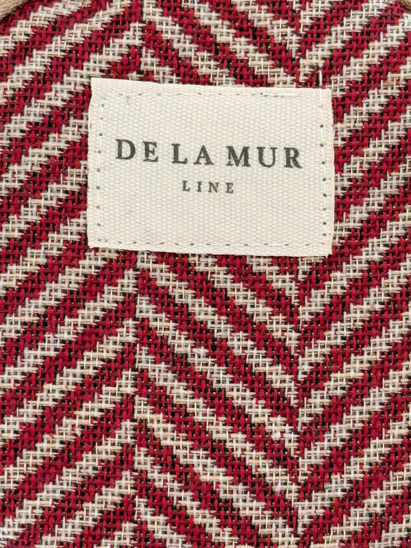 Dieses verspielte, runde Portemonnaie aus der La Mur Line ist aus einem dicken Jacquardstoff mit weinrotem Fischgrätmuster gefertigt.