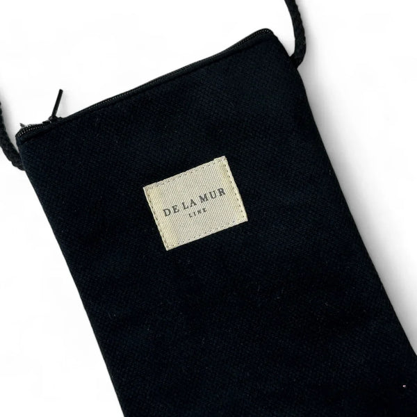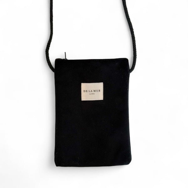Dieses hübsche Handy-Etui von La Mur Line ist aus dickem, schwarzem Samt gefertigt.