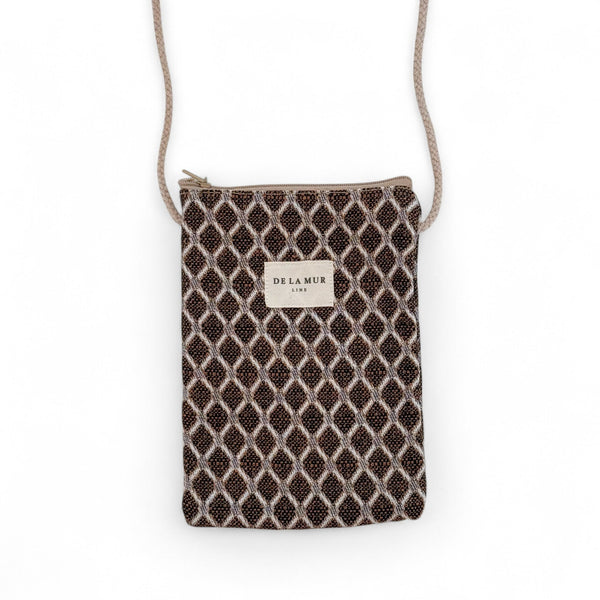 Diese hübsche Handyhülle von La Mur Line ist aus einem dicken Jacquardstoff mit einem geometrischen Muster in Brauntönen gefertigt.