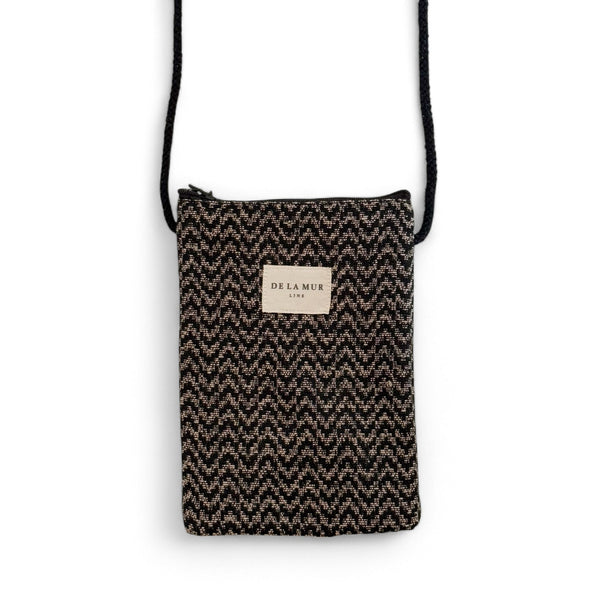 Diese hübsche Handyhülle von La Mur Line ist aus einem dicken Jacquardstoff mit einem Zickzackmuster in Schwarz und Beige gefertigt.