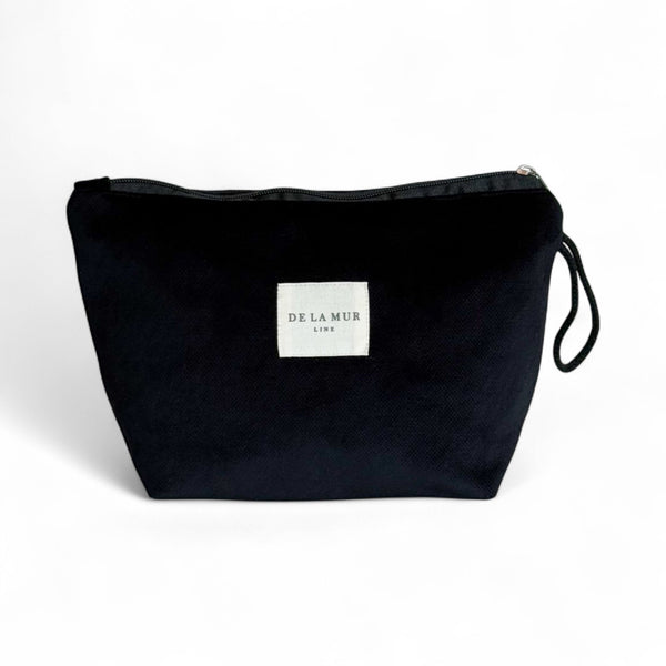 Deze Beauty Bag van de La Mur Line, ook wel toilettas of make-up tas genoemd, is uitgevoerd in een dikke zwarte fluwelen stof.