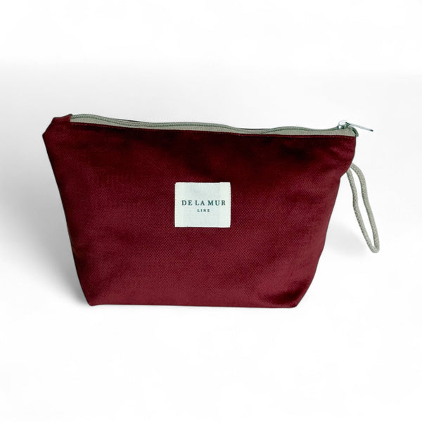Deze Beauty Bag van de La Mur Line, ook wel toilettas of make-up tas genoemd, is uitgevoerd in een dikke bordeauxrode fluwelen stof.