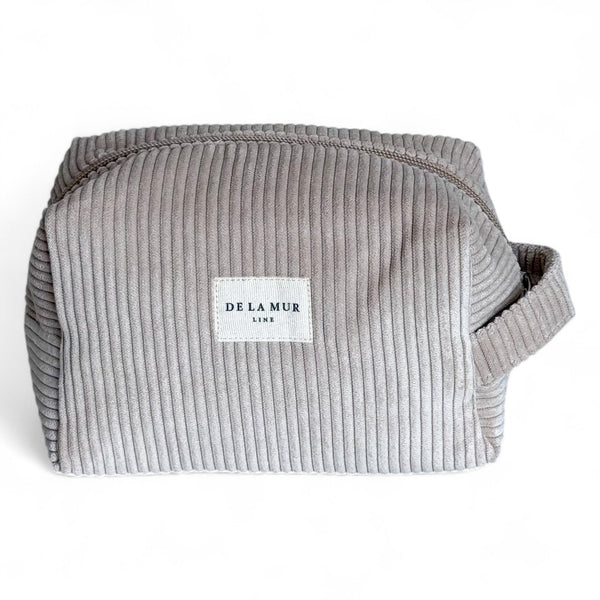 Deze Beauty Bag van de La Mur Line, ook wel toilettas of make-up tas genoemd, is uitgevoerd in een beige corduroy ribstof.