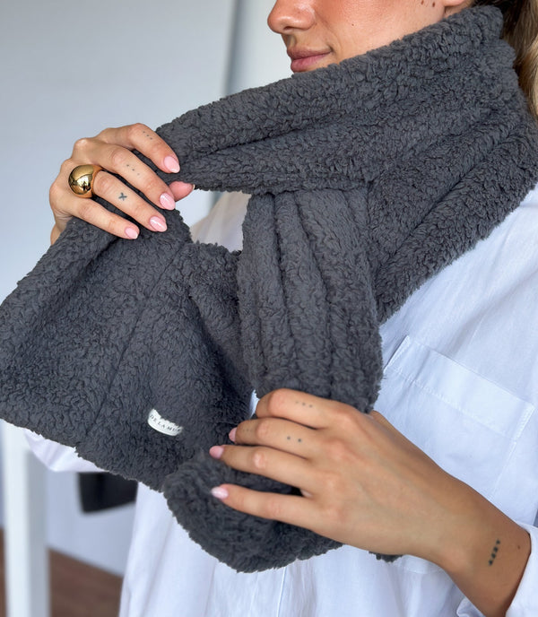 Dankzij het handige ontwerp steek je het uiteinde eenvoudig door de opening waardoor de sjaal mooi op zijn plaats blijft zitten. Deze korte teddy sjaal is compact, zacht en warm - een elegante winteraccesoire die comfort en stijl perfect combineert.