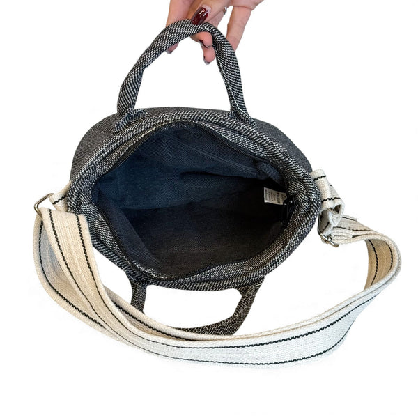- Voorzien van korte stoffen handgrepen en een verstelbare crossbodyband