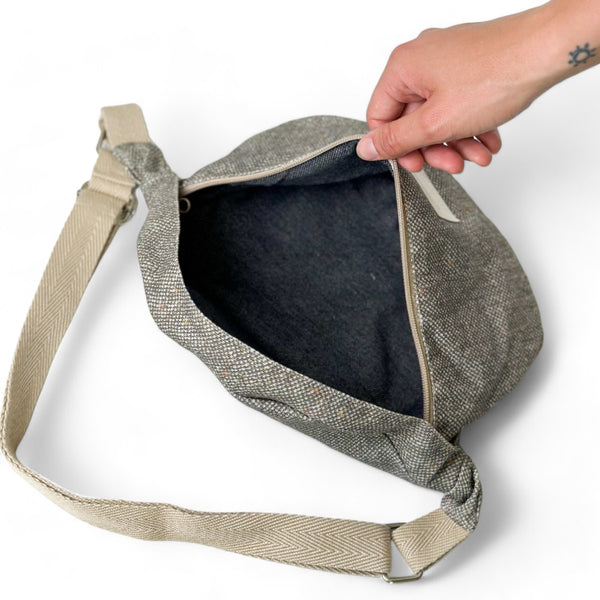 Dé musthave in je tassencollectie: de heuptas! Dit hippe heuptasje van de La Mur Line, ook wel fanny pack genoemd, is uitgevoerd in een fijne stof met een jute-look in een donkergroene kaki-tint.
