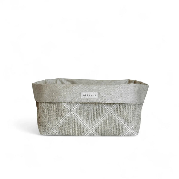Dit opbergmandje van De La Mur Line is gemaakt van een jacquardstof met een geometrische print in crème- en beigetinten. De binnenkant is afgewerkt met een gecoate laag die gemakkelijk schoon te maken is.