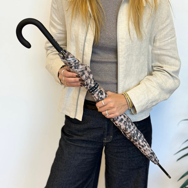 Deze elegante paraplu van De La Mur Line is uitgevoerd in een luipaardprint. Ontworpen in dezelfde print als onze tassen en accessoires, zodat je altijd perfect gestyled de deur uitgaat, ook als het regent.