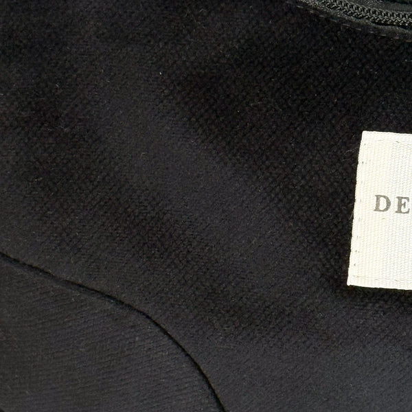 Deze kleine schoudertas van de La Mur Line is uitgevoerd in een dikke zwarte fluwelen stof.