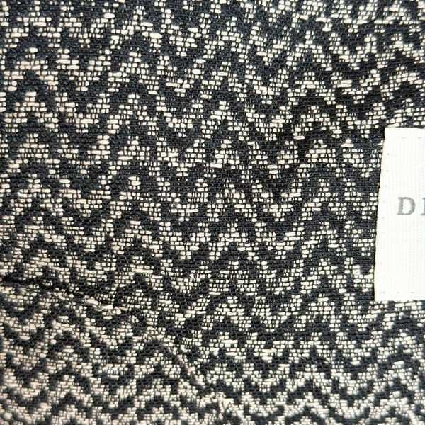 Deze kleine schoudertas van de La Mur Line is uitgevoerd in een dikke jacquardstof met een zigzagpatroon in zwart en beige.