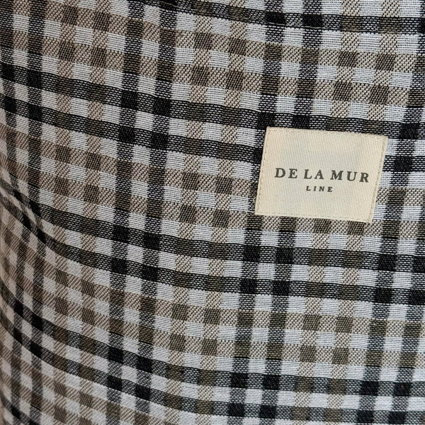 Deze grote shopper van De La Mur Line is uitgevoerd in een dikke jacquardstof met een ruitjespatroon in beige en zwarttinten.