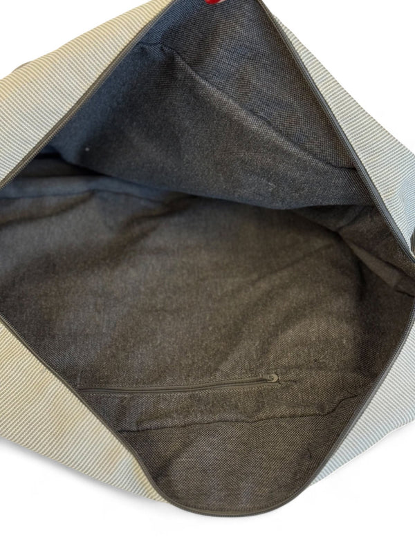 - Grijze ritssluiting aan de bovenzijde van de tas